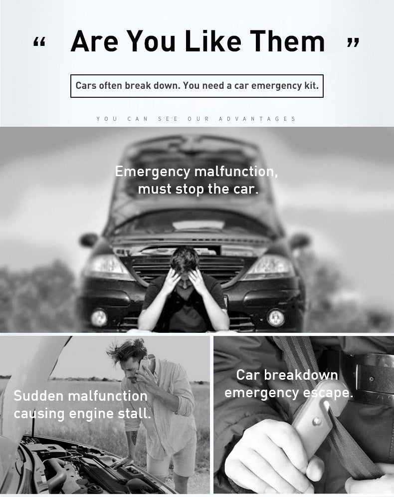 Ensure peace of mind on every journey with the LMY Car Emergency Breakdown Kit, thoughtfully equipped with essential safety tools to help you respond confidently to unexpected roadside situations.