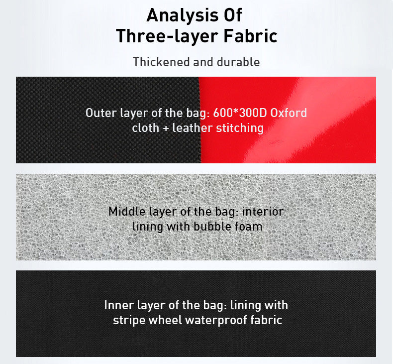 Each item is securely packed in a three-layer heavy-duty carry bag, made from 600*300D Oxford fabric with a bubble foam lining and waterproof interior—keeping tools dry, organized, and ready to use.